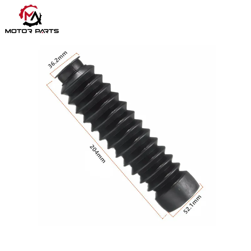 मोटारसायकलचे फ्रंट शॉक शोषक डस्ट कव्हर अत्यंत लवचिक आणि मऊ मटेरियलचे बनलेले आहे, जे शॉक शोषकच्या विस्तारामुळे आणि आकुंचनातून निर्माण होणाऱ्या सूक्ष्म कंपनांना प्रभावीपणे उशी करू शकते, तसेच स्वार आरामात सुधारणा करताना कंपनांमुळे होणारा आवाज लक्षणीयरीत्या कमी करते; काही उत्पादने विशेषत: जाड झालेल्या रचनांसह डिझाइन केलेली आहेत, जी सामान्य मॉडेलच्या तुलनेत 30% ने वजन वाढवतात. ते बाह्य प्रभावांचा जोरदार प्रतिकार करू शकतात जसे की लहान दगडांचे आघात आणि झाडाच्या फांद्यावरील ओरखडे, शॉक शोषकांना सर्वसमावेशक संरक्षण प्रदान करतात.
