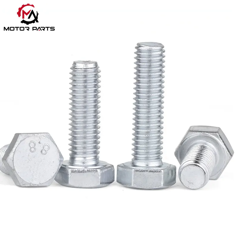 गॅल्वनाइज्ड कार्बन स्टील M8-M14 हेक्सागॉन बोल्ट विविध भार पातळी असलेल्या मोटरसायकल घटकांसाठी योग्य असलेल्या वैशिष्ट्यांची संपूर्ण श्रेणी देते: